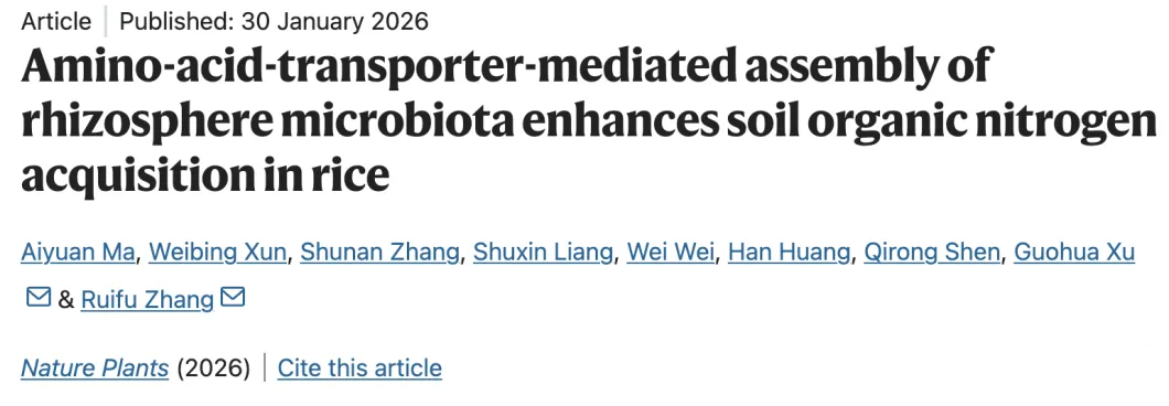 氮(N)是植物生长的必需养分。传统上认为植物主要吸收无机氮(如硝酸盐和铵盐),因此土壤“有效氮”通常以无机氮含量来衡量。然而,近年研究发现,植物(如水稻)也能直接吸收土壤中的有机氮,例如氨基酸。特别是在富含有机质的土壤中,有机氮对满足植物氮需求贡献巨大。不过,有机氮需要经过微生物分解才能释放出来被植物吸收。根际(根系周围的土壤区域)中有大量有益微生物,它们就像植物的“外挂助手”,能帮助植物获取养分。一方面,它们分解有机物,释放养分;另一方面,它们也能激活植物的养分吸收能力。虽然土壤环境对根际微生物影响很大,但植物自身的基因也在其中扮演着关键角色,能够“招募”特定类型的微生物。亚洲两大主要栽培稻——籼稻和粳稻,适应于不同的土壤环境。籼稻多种植在低纬度、有机质相对较低的地区,善于吸收硝酸盐。而粳稻多种植在高纬度、有机质丰富的地区,表现出更强的氨基酸吸收能力。之前的研究已经找到了与这些差异相关的一些关键基因。